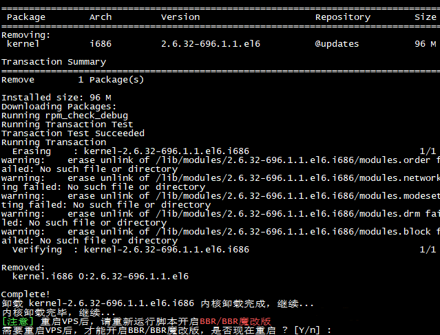 以安装BBR为例,输入数字1来安装。重启VPS如图: