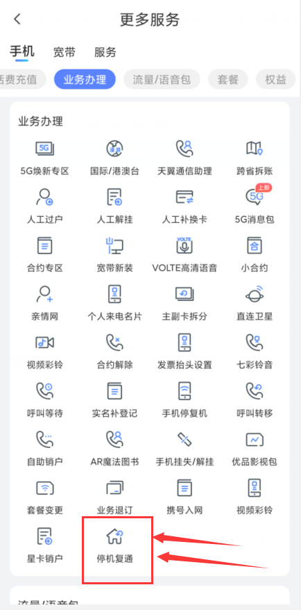 图二:选择停机复通(停复机)根据要求输入验证码停机保号即可。