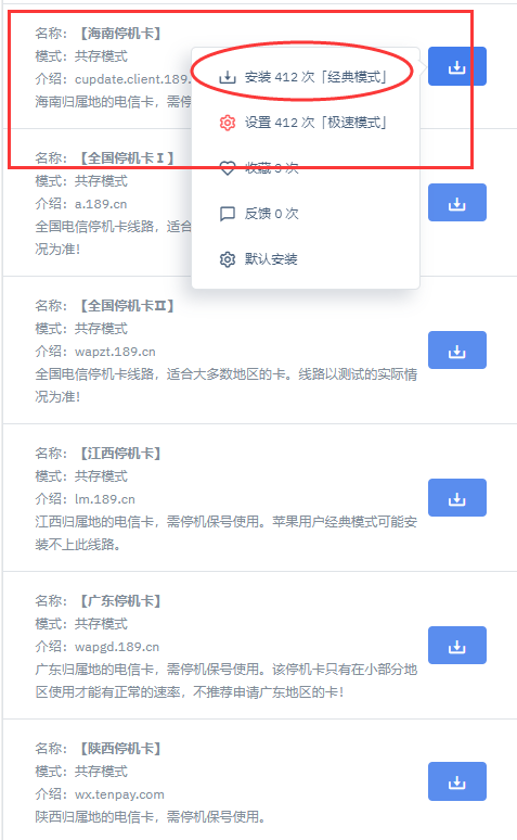 三、下载软件,安装对应的停机卡线路「经典模式」