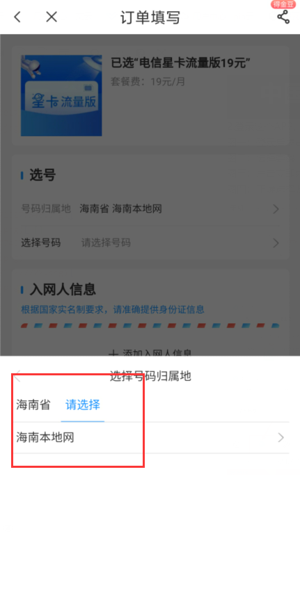 一、申请归属地(海南、江西)的电信卡,套餐无视。