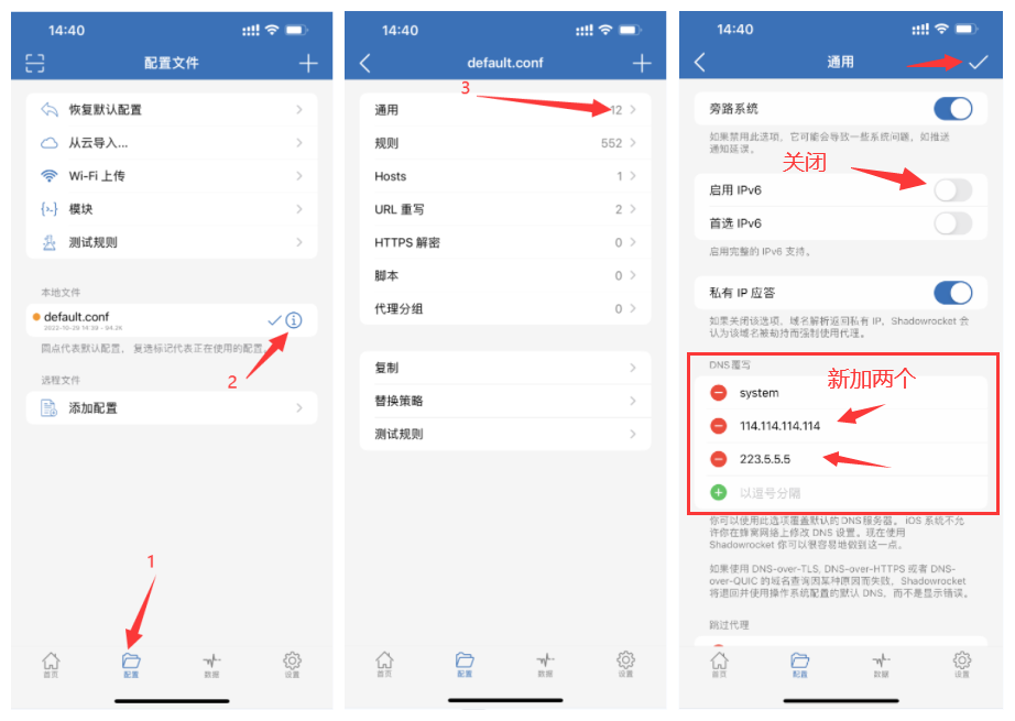 把启用IPv6关闭,在下面的DNS写成:114.114.114.114/223.5.5.5